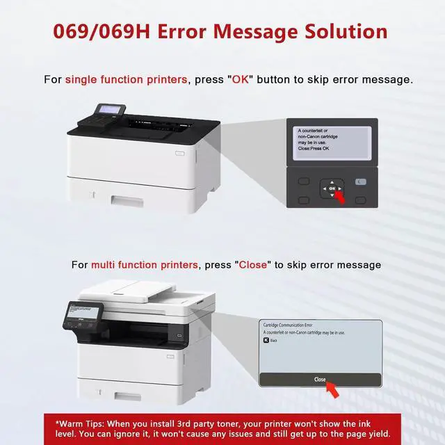With Upgraded Chip: CRG 069H CRG069H toner cartridges are equipped with the latest chips for hassle-free printing experience. No need to remove and install old chip on this replacement for canon 069H toner cartridge set