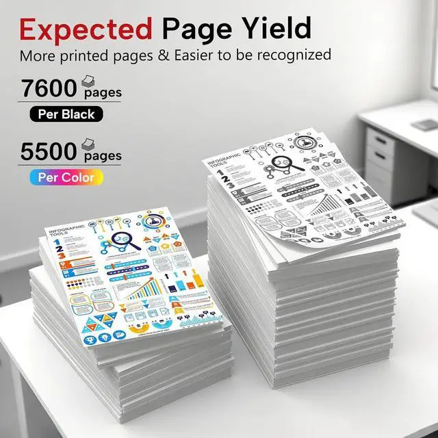 High Page Yield: 7,600 pages per Black & 5,500 pages per Cyan/Yellow/Magenta Toner Cartridge (Letter A4, at 5% coverage)