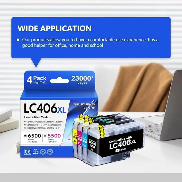 Excellent Performance: Our LC406XL ink cartridges deliver vivid colors, sharp text, and clear prints every time, ensuring professional-quality results with consistent performance