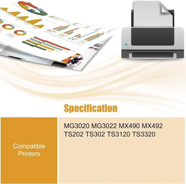 Compatible printer models for this product: Compatible for Canon MG3020 MG3022 MX490 MX492 TS202 TS302 TS3120 TS3320 printers. Please check your printer model carefully before purchasing! If you are not sure about your printer model or code, please tell us and we will help you find products suitable for your printer