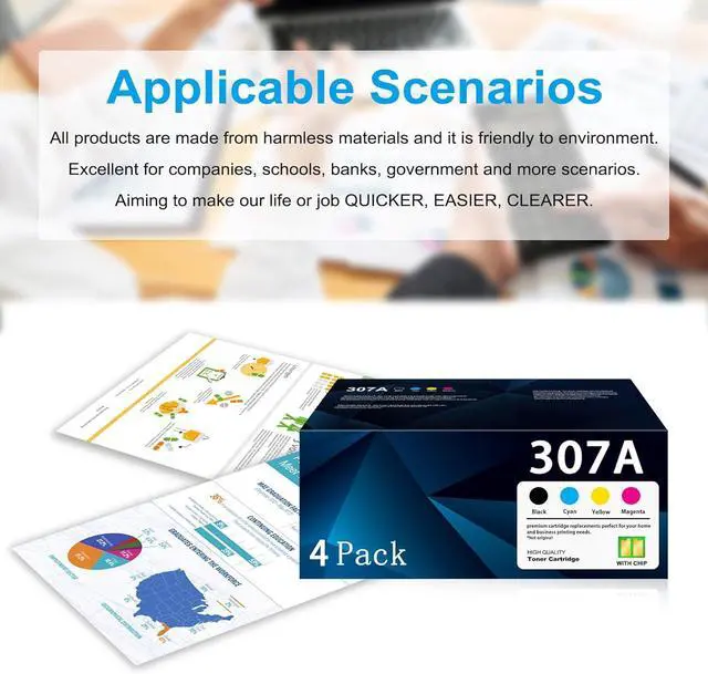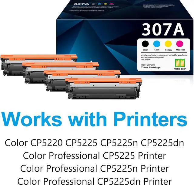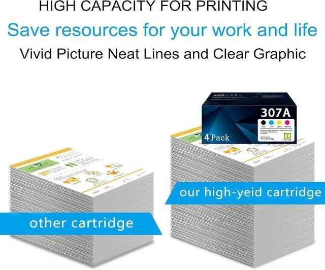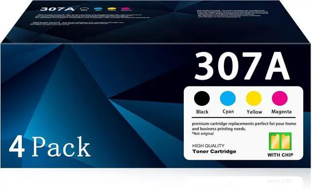 With Chip: This 307A toner cartridges 4 pack with chip, Accurate recognition by the printer and monitoring of remaining toner