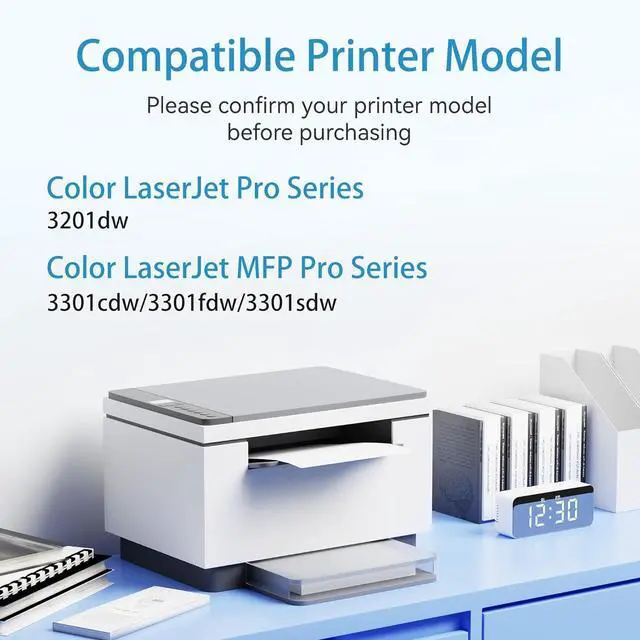 Compatible Printers: Compatible for HP Color Laserjet Pro 3201dw, Color Laserjet Pro MFP 3301fdw, Color Laserjet Pro MFP 3301cdw, Color Laserjet Pro MFP 3301sdw Printer