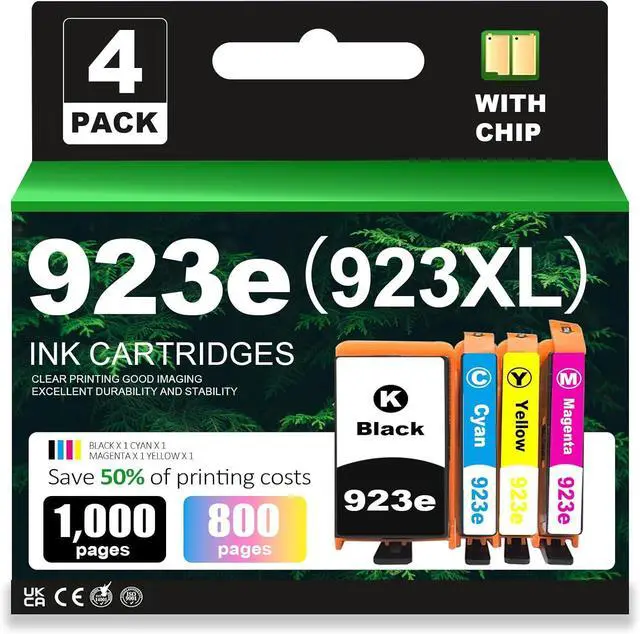 Package Contents: 1 x 923e Black Ink Cartridges, 1 x 923e Cyan Ink Cartridges, 1 x 923e magenta Ink Cartridges1 x 923e Yellow Ink Cartridges
