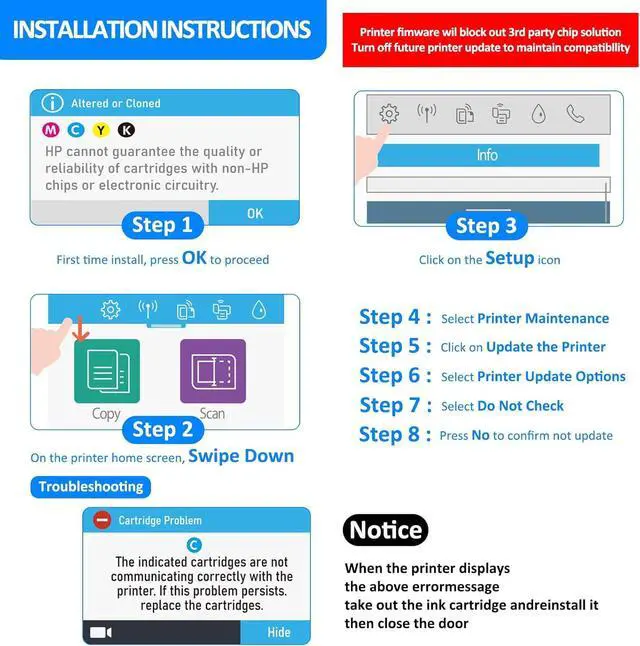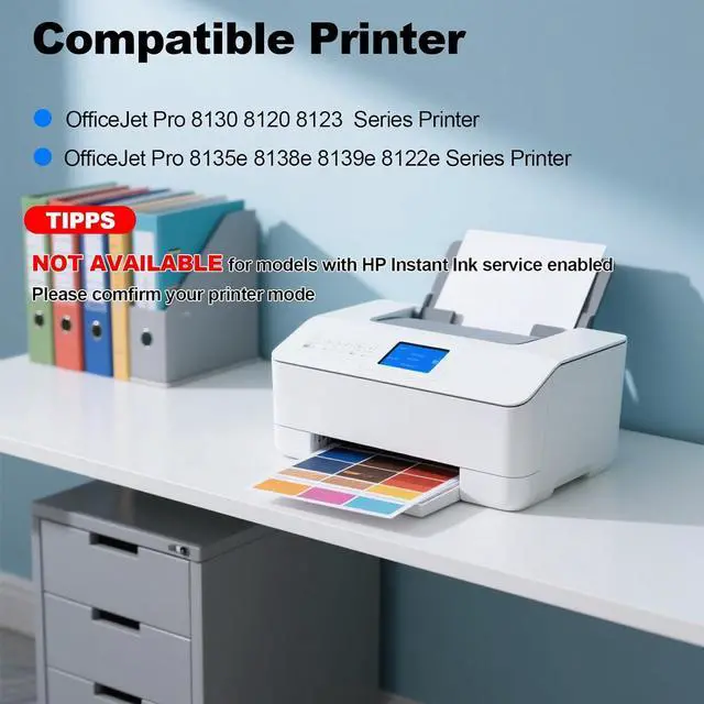 Compatible for Printers: Works with HP OfficeJet Pro 8130 8135e 8138e 8139e 8120 8123 8122e Series Printer Tipps923e compatible cartridges do not fit models with Instant Ink service enabled