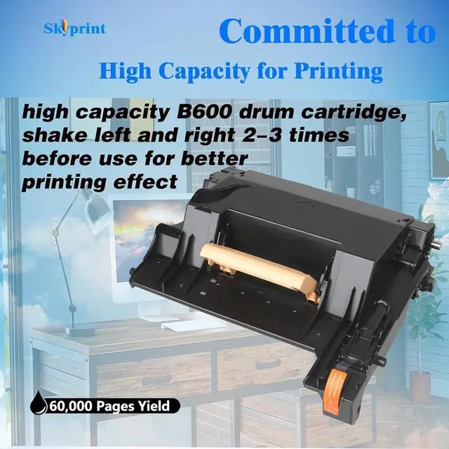 • Skyprint Service:When purchasing B600 drum unit, please confirm if your printer model meets the requirements. If you have any questions about the purchasing process and receive defective or damaged products, please us as soon as possible. We will provide you with service. Wishing you a pleasant shopping experience