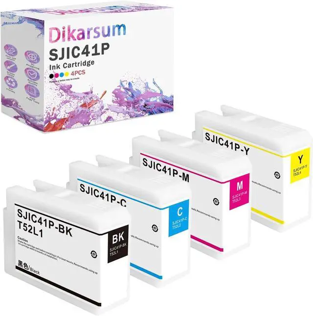 Package includes: 4 Pack SJIC41P Ink Cartridge T52L1 T52L2 T52L3 T52L4