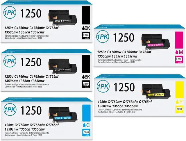 Package Contents: 1250c 810WH C5GC3 XMX5D WM2JC Toner (2BK/1C/1M/1Y 5Pack)