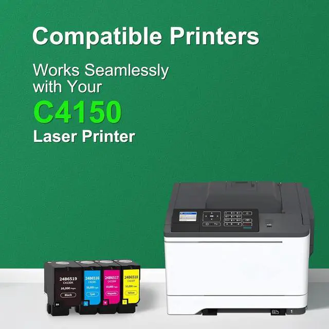 Package Contents: 4PK Compatible Lexmark C4150 Printer toner cartridges replacement for Lexmark 24b6519, 24b6516, 24b6517, 24b6518 Toner cartridge (BK/C/M/Y)