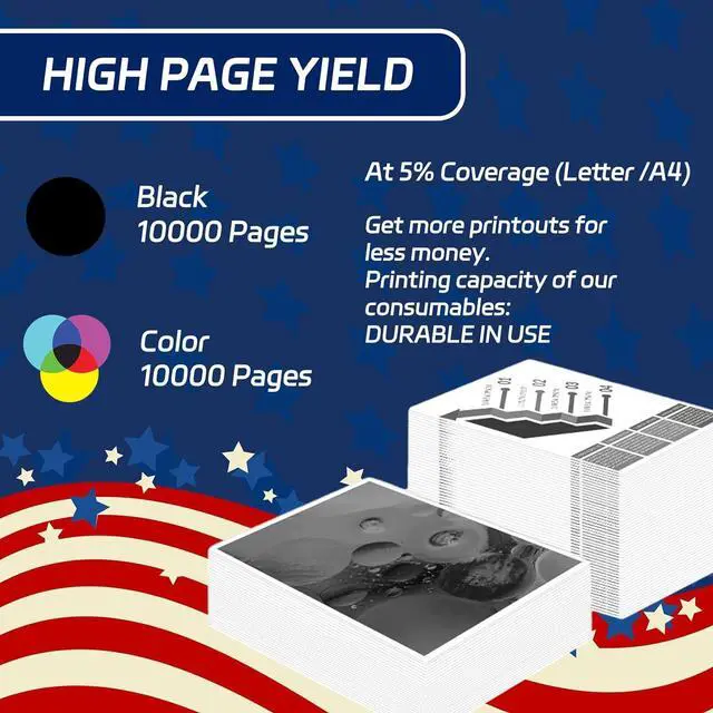 High Capacity: Our products are designed to print more pages, with large capacities that reduce the frequency of replacement. Black (BK/K) Print Pages: 10000 pages. Color Print Pages: 10000 pages (5% coverage on A4 paper)