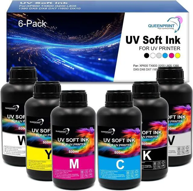 Guaranteed compatible: for XP600 TX800 i3200 L805 1390 DX5 DX6 DX7 i1600 DX10. Before purchasing this UV Soft Ink, please make sure your printer and printhead model are compatible.