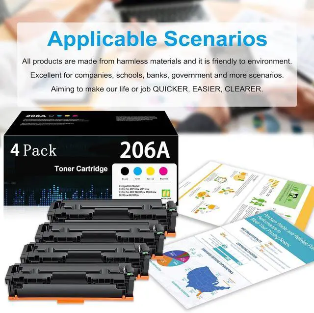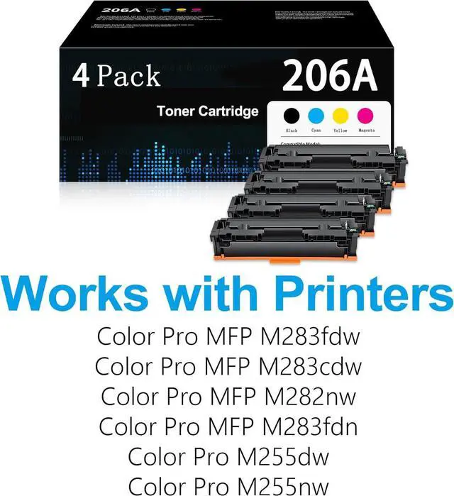 Includes: You will receive 4-Pack 206A, 1 x 206A Black (W2110A), 1 x 206A Cyan (W2111A), 1x 206A Yellow (W2112A), 1 x 206A Magenta (W2113A)