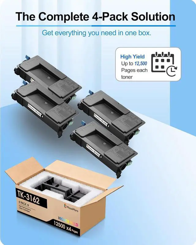 Model: TK3162 TK 3162 TK-3162 1T02T90US0 Toner Cartridge. Formulated with premium A-Grade toner, these black ink cartridges produce sharp, professional black-and-white prints with consistent monochrome accuracy. They are engineered for reliable performance that helps maintain your printers health and extends its lifespan.