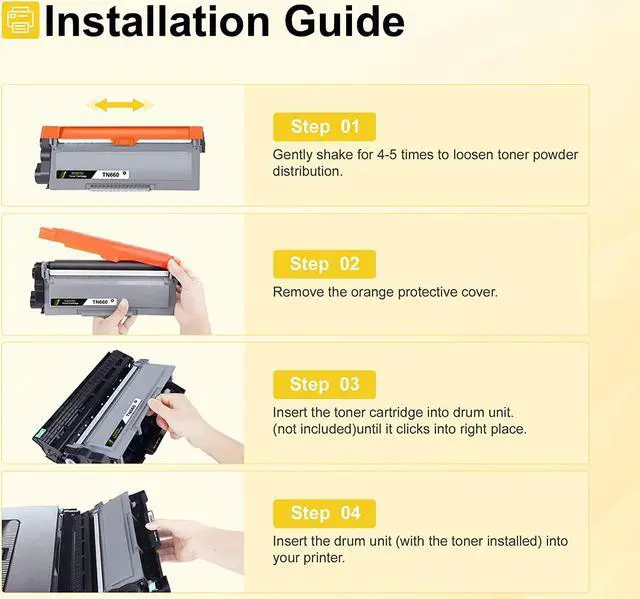 Package Content: 1×Conprehensive User Guide, 2×TN-660 Black Toner Cartridge