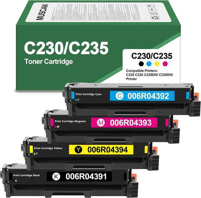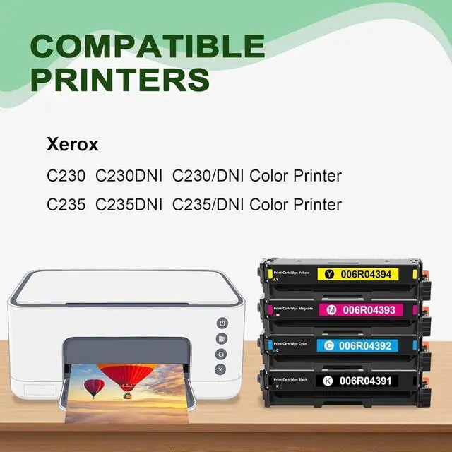 Applicable models: Replacement for Xerox C230 C230/DNI C235 C235/DN Color Printer, Compatible with Code Number 1*Black 006R04391 & 006R04383, 1*Cyan 006R04392 & 006R04384, 1*Magenta 006R04393 & 006R04385, 1*Yellow 006R04394 & 006R04386
