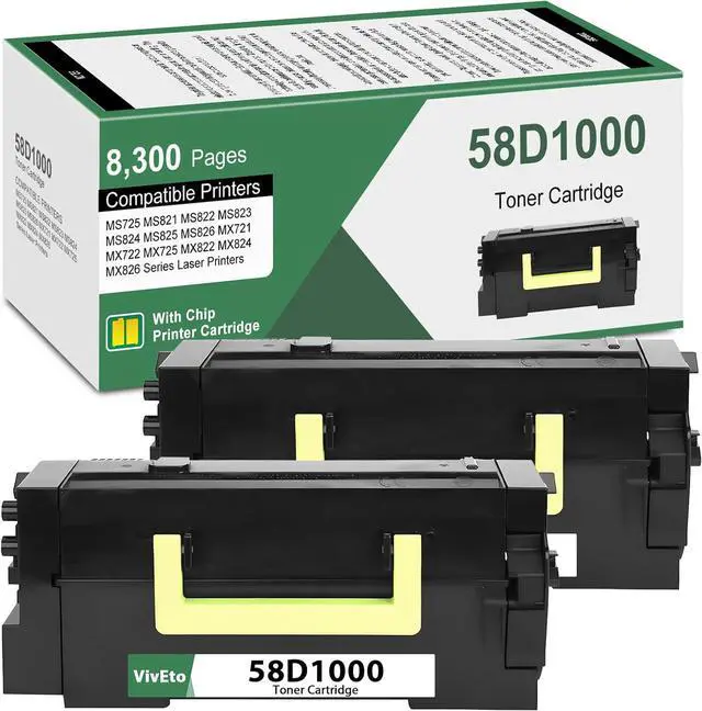 Contents: VivEto ink cartridge for 58D1000 replacement for 58D1000 lexmark toner cartridge; 2 X 58D1000 black toner cartridge