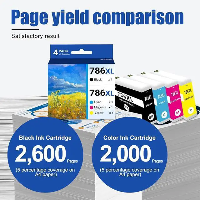 In this Package: 4 Pack 786XL Ink Cartridges set includes 1 x 786XL Black ink cartridge,1 x 786XL Cyan ink cartridge,1 x 786XL Magenta ink cartridge,1 x 786XL Yellow ink cartridge