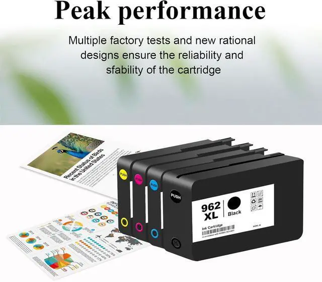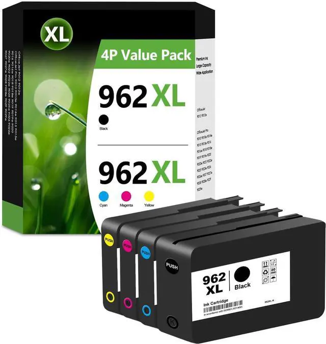 What's in the box:4 Pack 962XL Ink Cartridges(1×Black 1×Cyan 1×Magenta 1×Yellow).