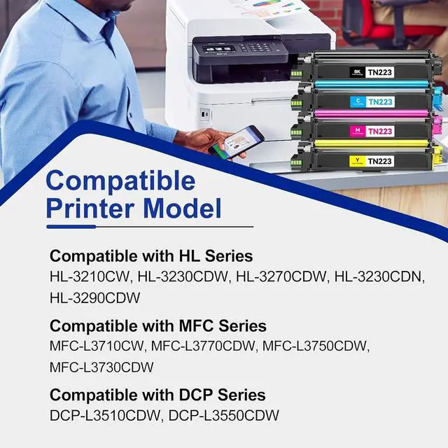 TN223 TN223 BK/C/M/Y toner cartridge 4 pack: compatible with Brother MFC-L3710CW, MFC-L3770CDW, MFC-L3750CDW, MFC-L3730CDW, HL-3210CW, HL-3230CDW, HL-3270CDW, HL-3230CDN, HL-3290CDW, DCP-L3510CDW, DCP-L3550CDW Laser Printer