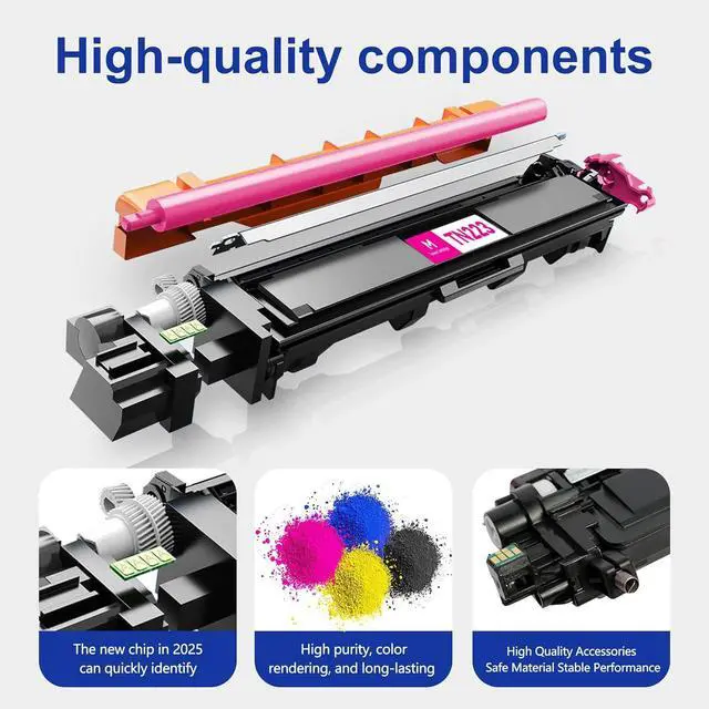 Amazing advantages: Our TN223 TN223 BK/C/M/Y toner cartridge uses micro-fine toner technology to print each letter as if it were laser engraved, sharp and distinct, and a high-contrast imaging system that easily restores every detail in charts, drawings, and photographs, accurate down to every gray scale.Perfectly compatible with TN227 BK/C/M/Y toner providing you with outstanding print quality