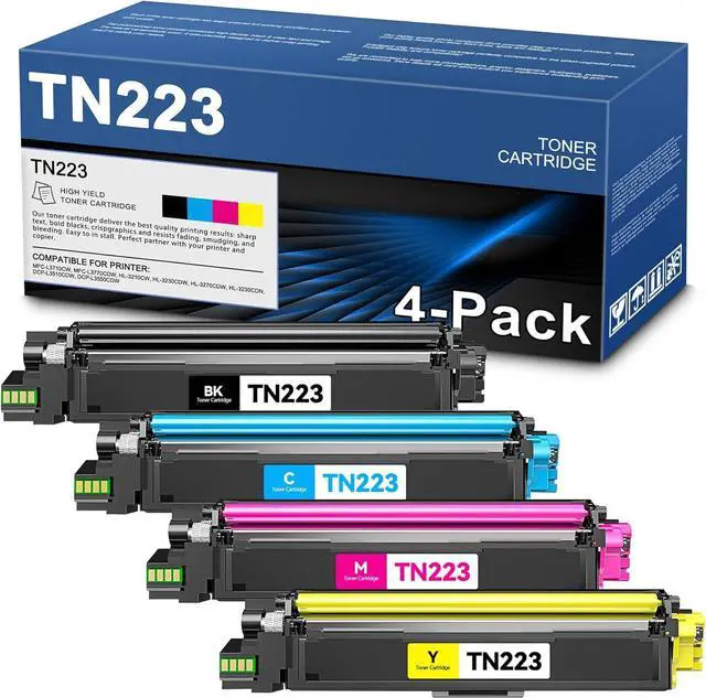 Package Contents: 4 pack new TN223 TN-223 Toner Cartridge (1Black+1Cyan+1Magenta+1Yellow)