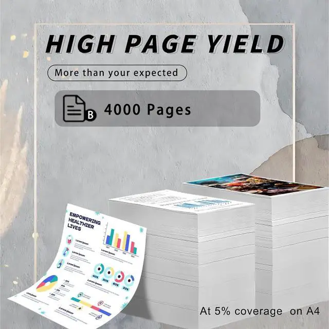 Printing page number description: This Toner Cartridges has excellent printing and can provide you with long-term stable printing support. Each black Toner Cartridges can print approximately 4000 pages (A4 paper, 5% page coverage)