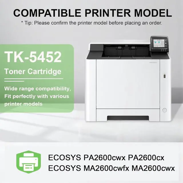 Compatible Printers for TK-5452 Toner Cartridge: ECOSYS PA2600cwx PA2600cx MA2600cwfx MA2600cwx Printer