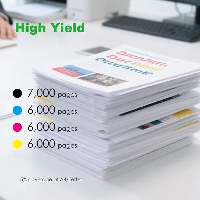High page yield: up to 7000 pages per black and 6000 per color (at 5% coverage A4/Letter)