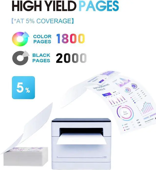High Page Yield: Prints up to 2,000 pages per 210A Black Toner Cartridges , up to 1,800 pages per 210A Color Toner Cartridge (based on 5% coverage at A4 page)