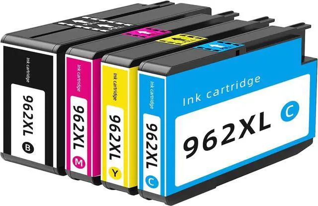 Package contents: 4-pack of 962 xl ink (1 962xl black, 1 962xl cyan, 1 962xl magenta, 1 962xl yellow), and a user guide