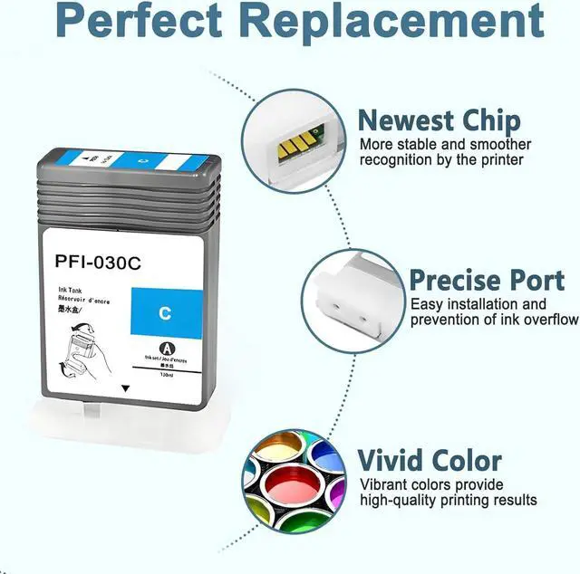 Superior Quality: This high-yield PFI-030 ink cartridge uses the latest chip technology and high-quality pigment ink, with an anti clogging nozzle design and easy installation. Provide clear text and graphics, comparable to the original