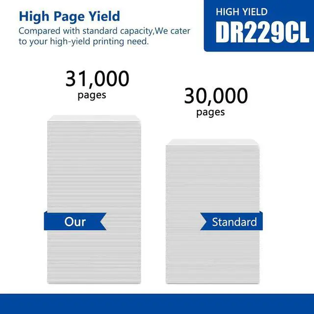 Quality control is rigorous: Our DR229CL Drum unit is crafted from top-notch materials, while stringent quality control and rigorous testing guarantee that each Drum unit adheres to the highest standards of excellence