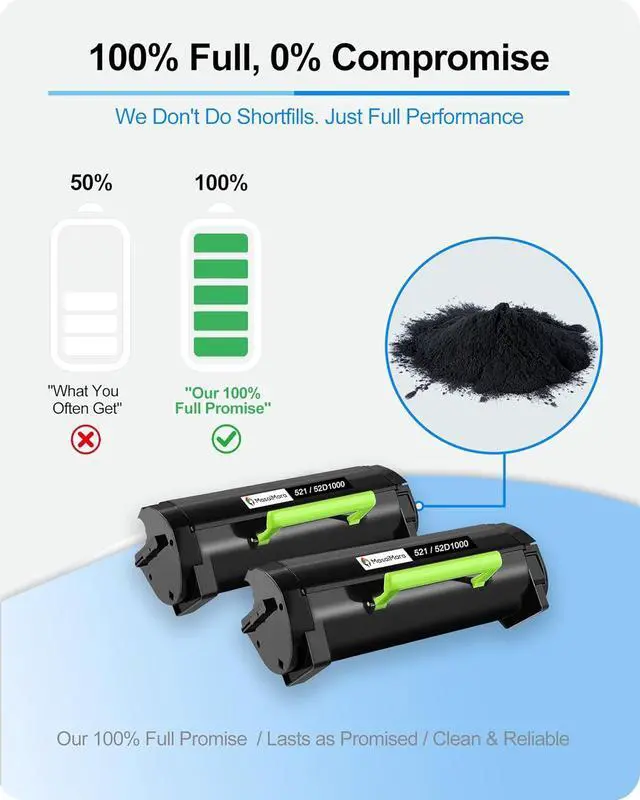 Model: 521 52D1000 Toner Cartridge. Formulated with premium A-Grade toner, these black ink cartridges produce sharp, professional black-and-white prints with consistent monochrome accuracy. They are engineered for reliable performance that helps maintain your printers health and extends its lifespan.