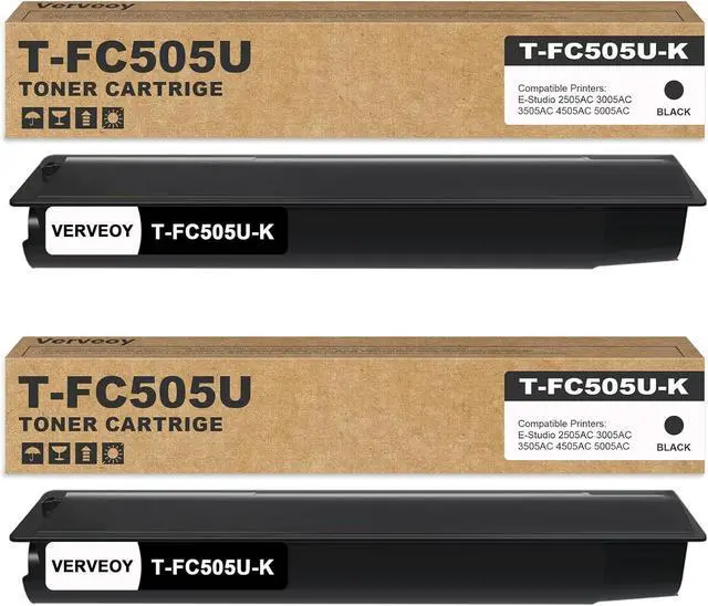 Package Content: Verveoy replacement for Toshiba T-FC505U T-FC505U-K T-FC505UK black toner cartridges (2-Pack, BK)