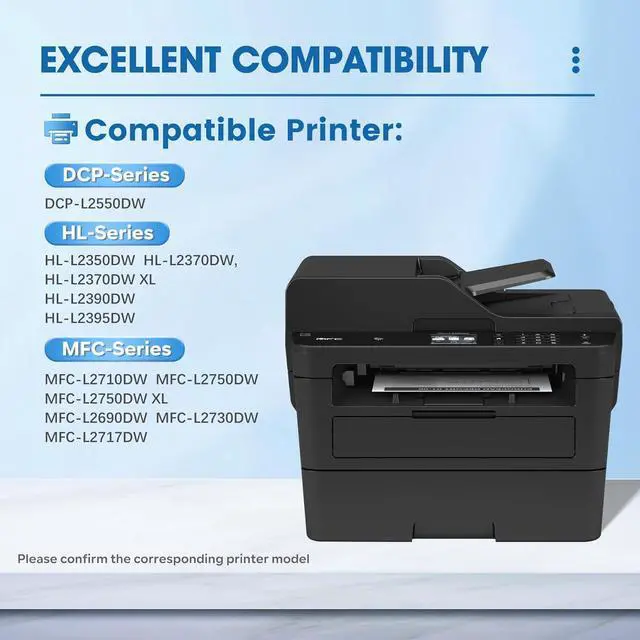 Compatible for Printer: DCP-L2550DW, HL-L2350DW, HL-L2370DW, HL-L2370DW XL, HL-L2390DW, HL-L2395DW, MFC-L2710DW, MFC-L2750DW, MFC-L2750DW XL, MFC-L2690DW, MFC-L2730DW and MFC-L2717DW Printer.