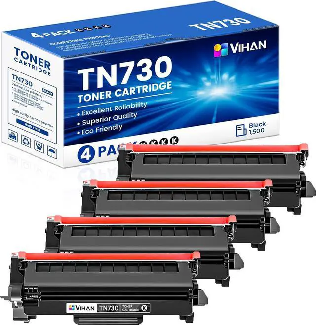 Package Contents: VIHAN 4 Packs TN730 TN-730 Black toner Replacement for Brother TN730 TN-730 toner cartridge.