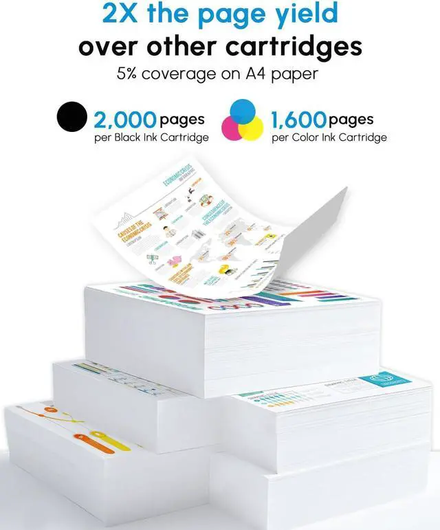High Page Yield: 2000 Pages for 962xl Black Ink Cartridges, 1600 Pages for 962xl Cyan Yellow Magenta Ink Cartridges(at 5% coverage)