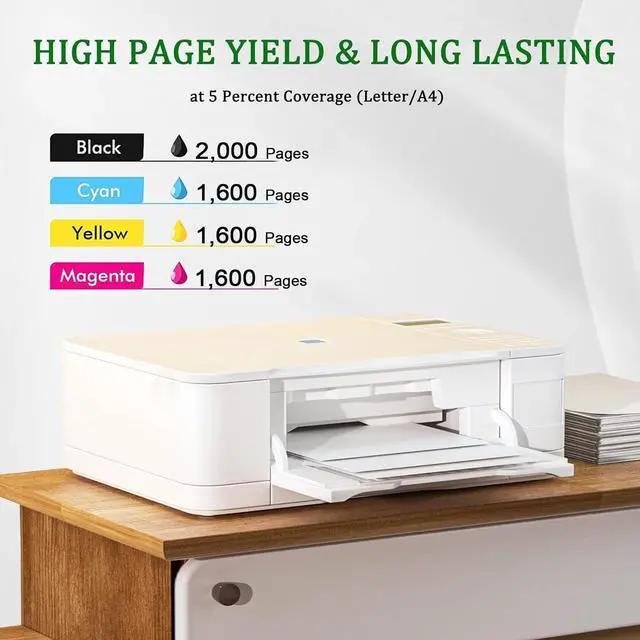 Printed Pages:Up to 2,000 pages per black cartridge and 1,600 pages per color cartridge.(With 5% coverage on A4 paper)