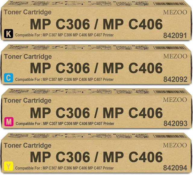 Package Contents: 4 Pack MP C306/MP C406 Toner Cartridge (Black Cyan Magenta Yellow),No initialization requiredinstall and print immediately
