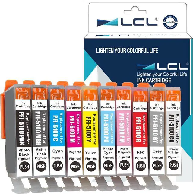 Pigment Ink: LCL PFI-5100 ink is pigment ink which has a high concentration and contrast, and is an ink that can draw fine characters clearly without color infiltration. Pigment inks are waterproof and light resistant and do not fade even when outdoors, thus allowing prints to last long enough.