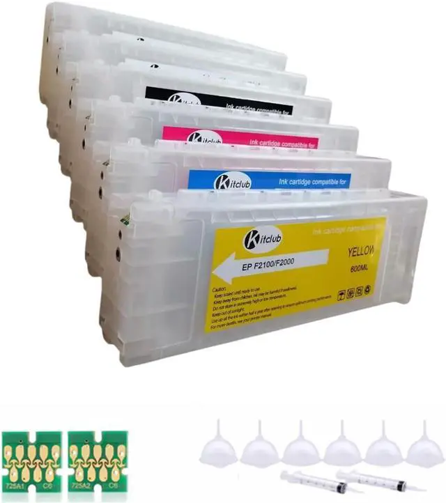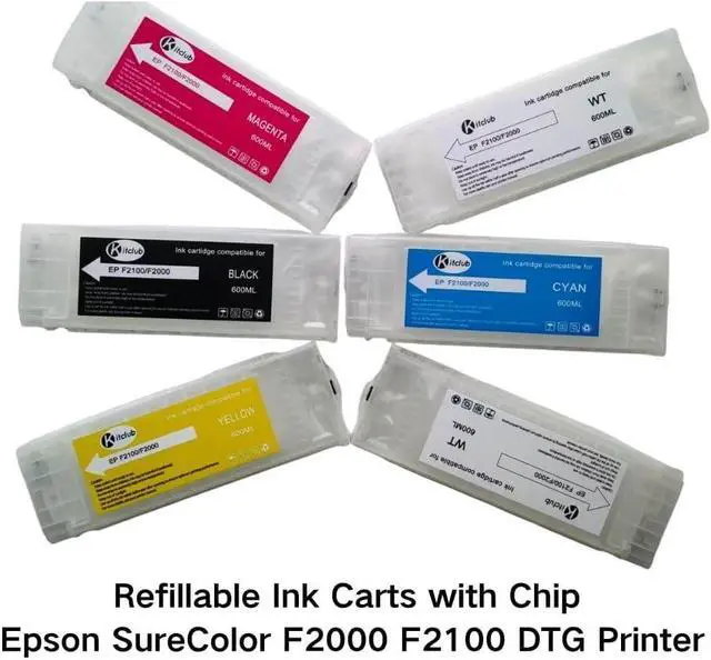 Wide Compatibility: This Refillable empty cartridge is fully compatible for Epson SureColor F2000 F2100 DTG Printer, CMYKWW, Model T7251 T7252 T7253 T7254 T725A1 T725A2.
