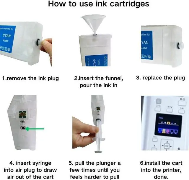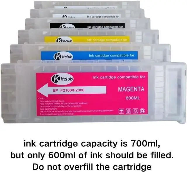 Note: The ink cartridge capacity is 700ml, but only 600ml of ink should be filled. Do not overfill the cartridge.