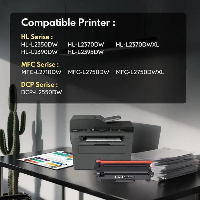 High Page Yield: Per TN-730 TN730 Black Toner Cartridge can print 1,500 Pages at 5% coverage (Letter/A4)