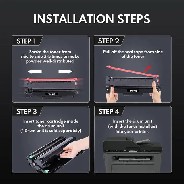 Package content: 4 Pack TN-730 TN730 Black Toner Cartridge