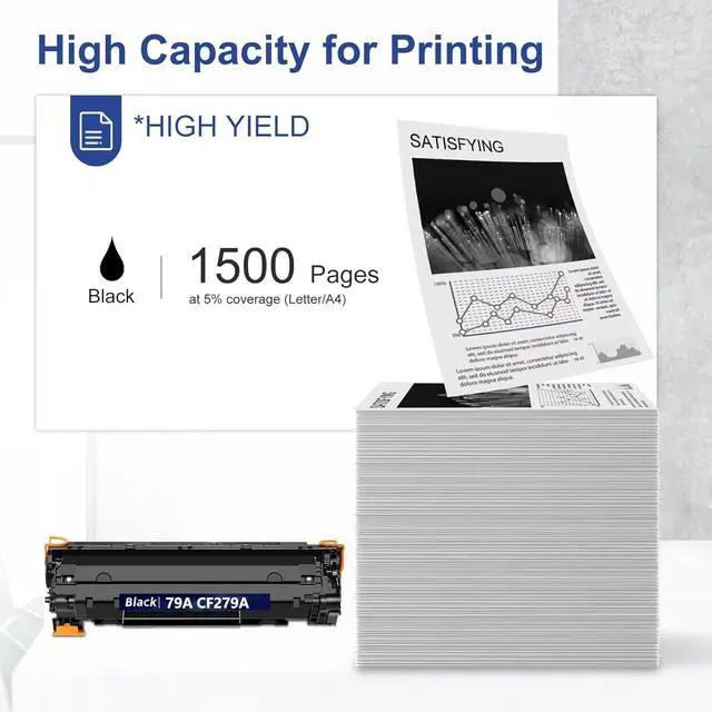 High Page Yield: Up to 1,500 pages per 79A CF279A Black Toner Cartridge (Letter A4, at 5% Coverage)