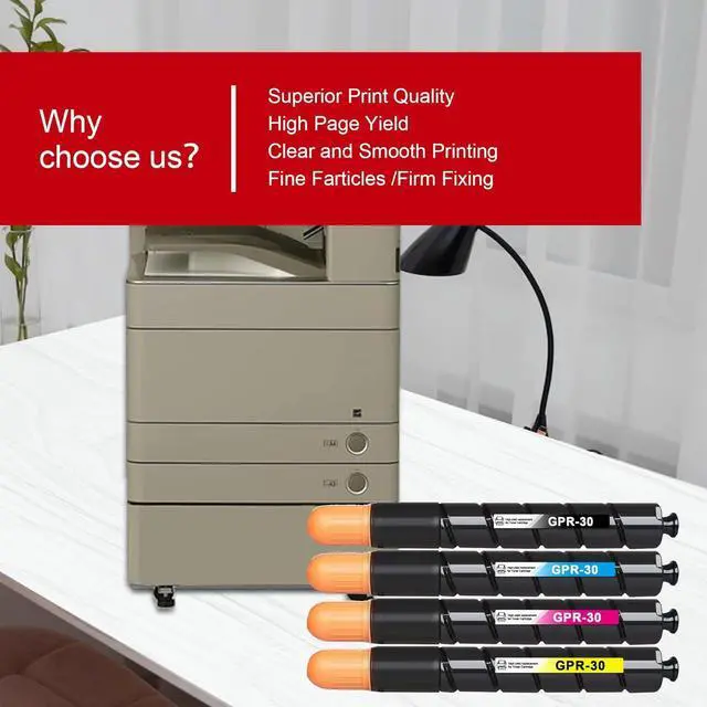 Package Contents: 4-Pack GPR-30 Toner Cartridge(Black, Cyan, Magenta, Yellow)