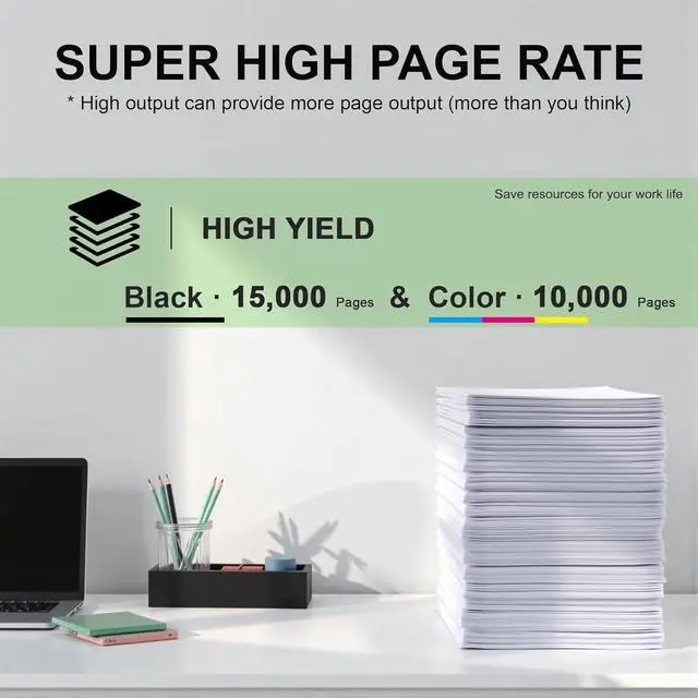 MPC2003 MPC2503 Toner Cartridge High Yield: 15,000 pages per cartridge at 5% coverage of A4 Letter,and 10,000 pages per colors at 5% coverage of A4 Letter.