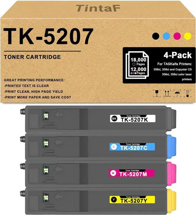 Product Name: TintaF TK-5207 TK5207 Toner Cartridge 4-Pack (Black,Cyan,Magenta,Yellow) Replacement for Kyocera TK5207K TK5207C TK5207M TK5207Y Toner Cartridge 1T02R50CS0 1T02R5CUS0 1T02R5BUS0 1T02R5AUS0