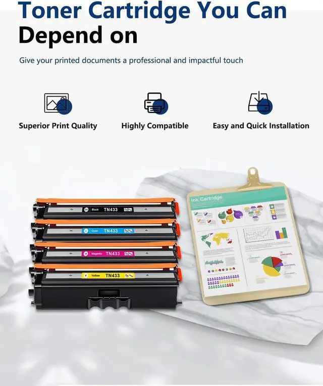 Superior Print Quality: This TN433 Replacement Toner Cartridge Delivers Crisp Black Text and Vivid Colors with Consistent Ink Flow for Reliable Everyday Printing