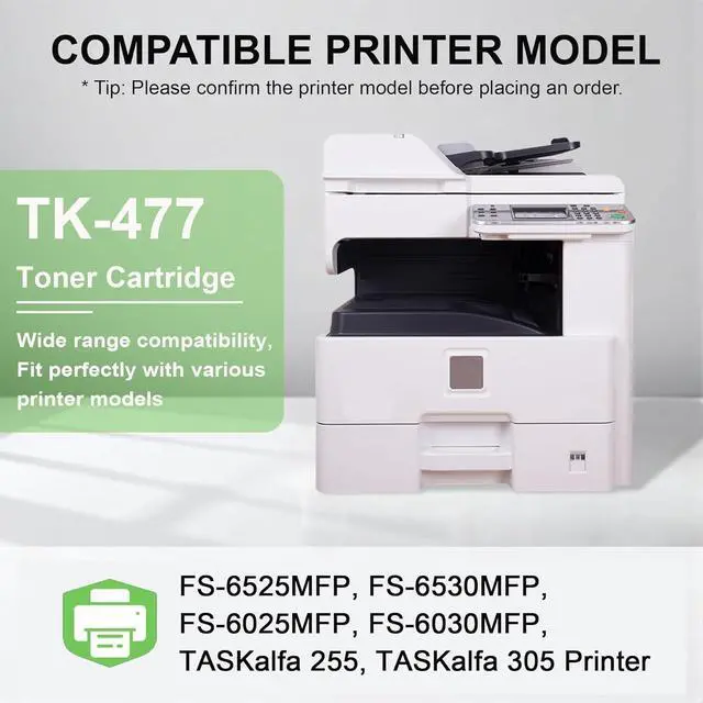 Compatible Printers for TK477 Toner Cartridge: FS-6525MFP FS-6530MFP FS-6025 FS-6030 TASKalfa 255 TASKalfa 305 Printer