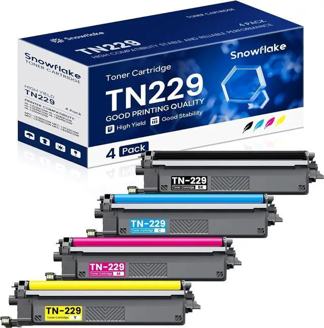 The package contains : 4 Pack TN229 Toner Cartridges (1Black+1Cyan+1Magenta+1Yellow).
